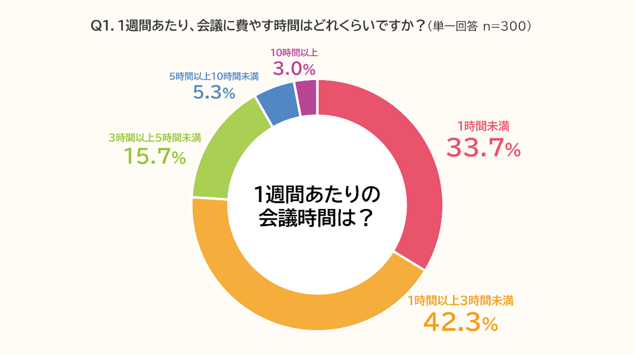 ■Q1 1週間あたりの会議時間、「1~3時間」が最多(42.3%)
