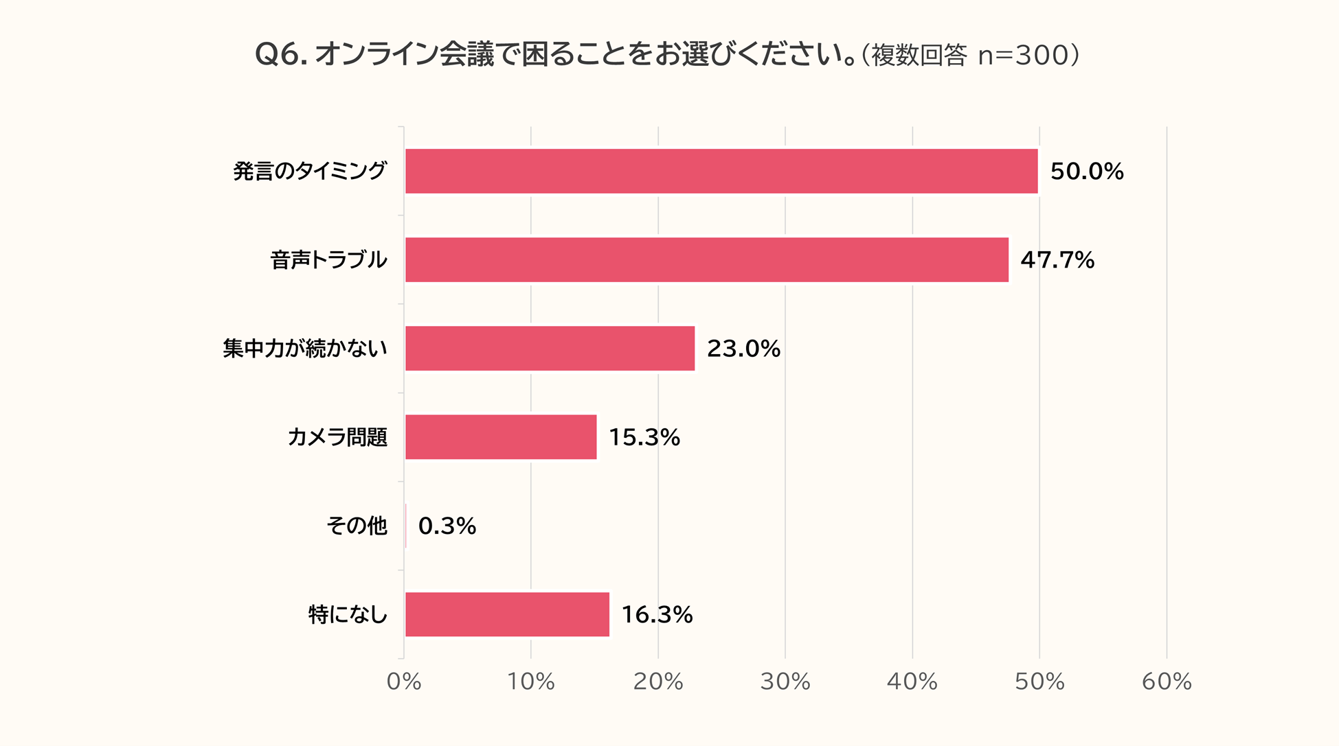 ■Q6 オンライン会議の課題は「発言のタイミング」「音声トラブル」