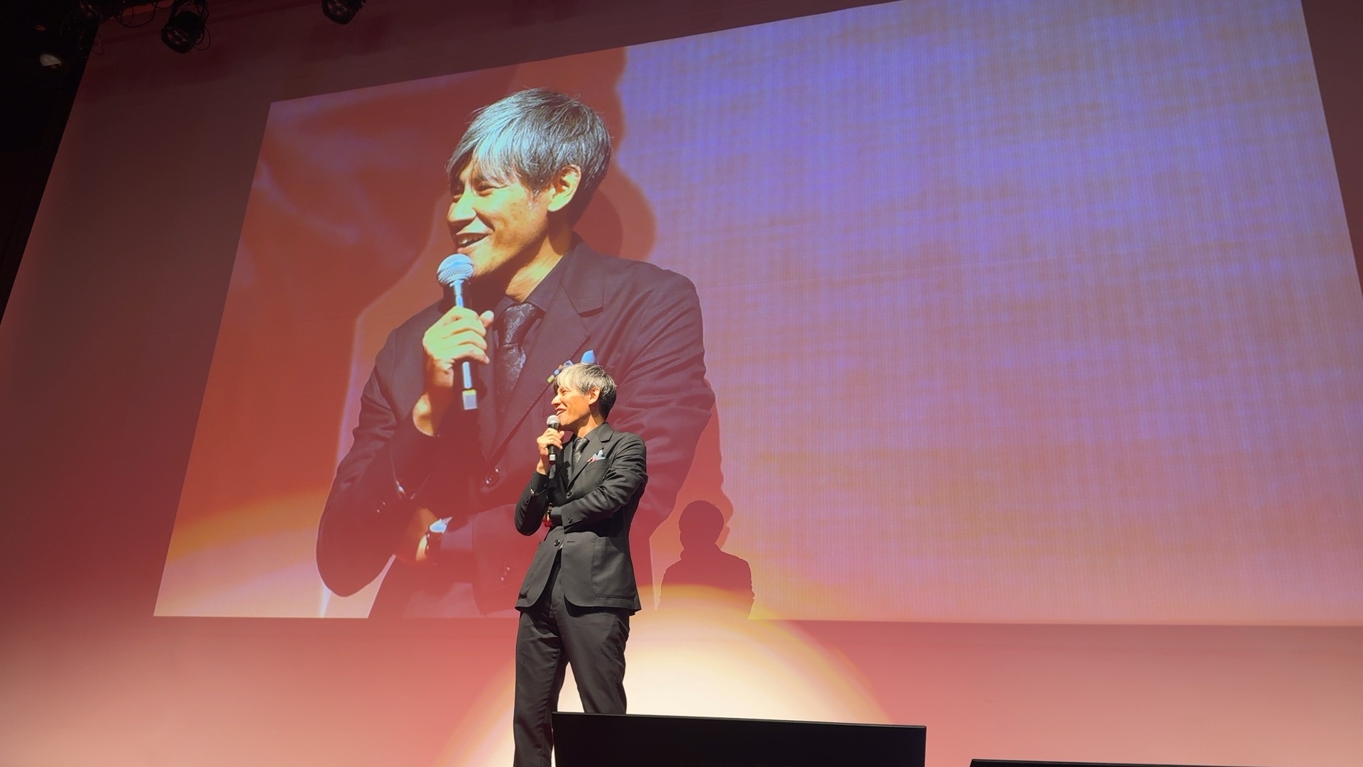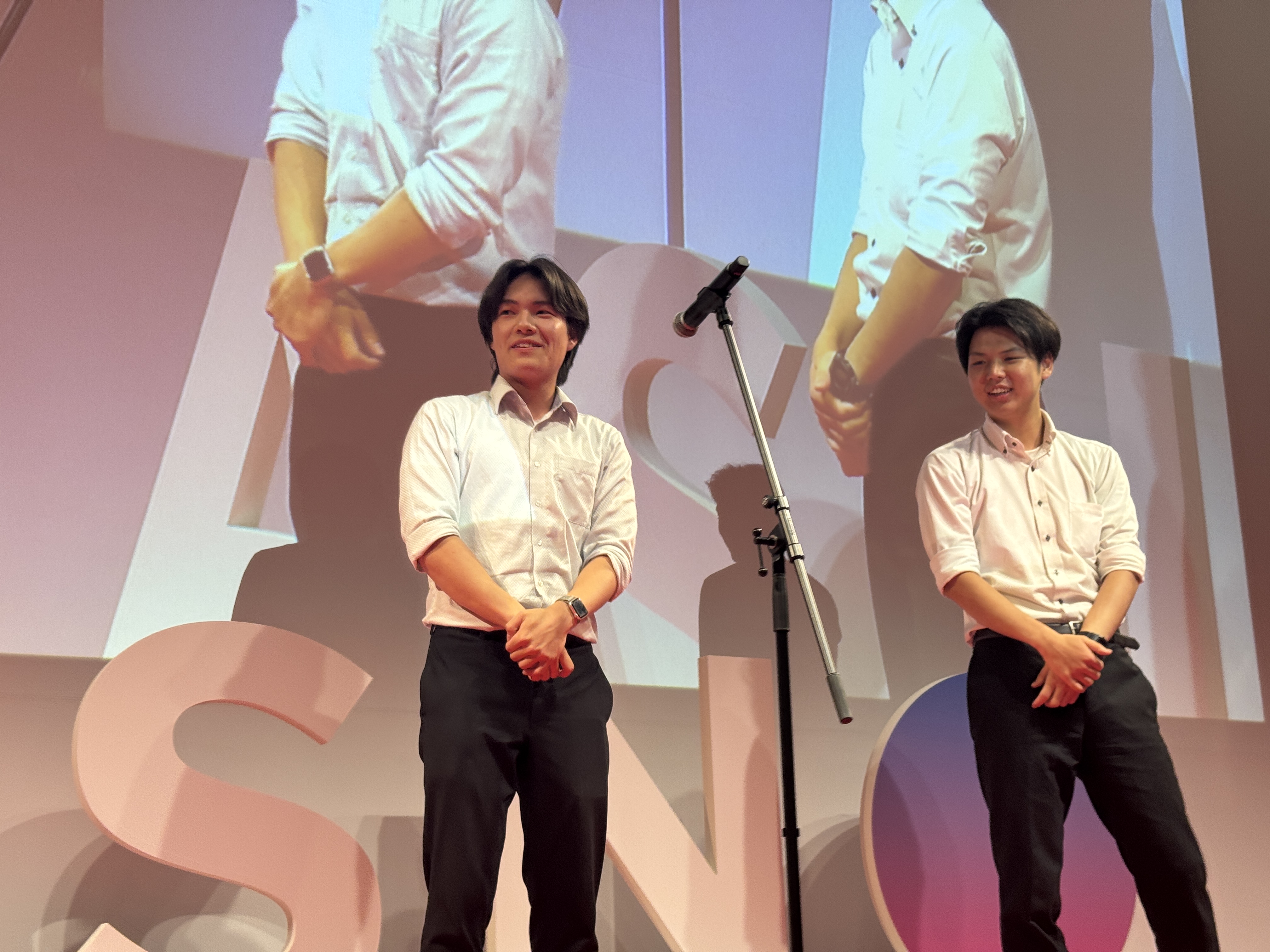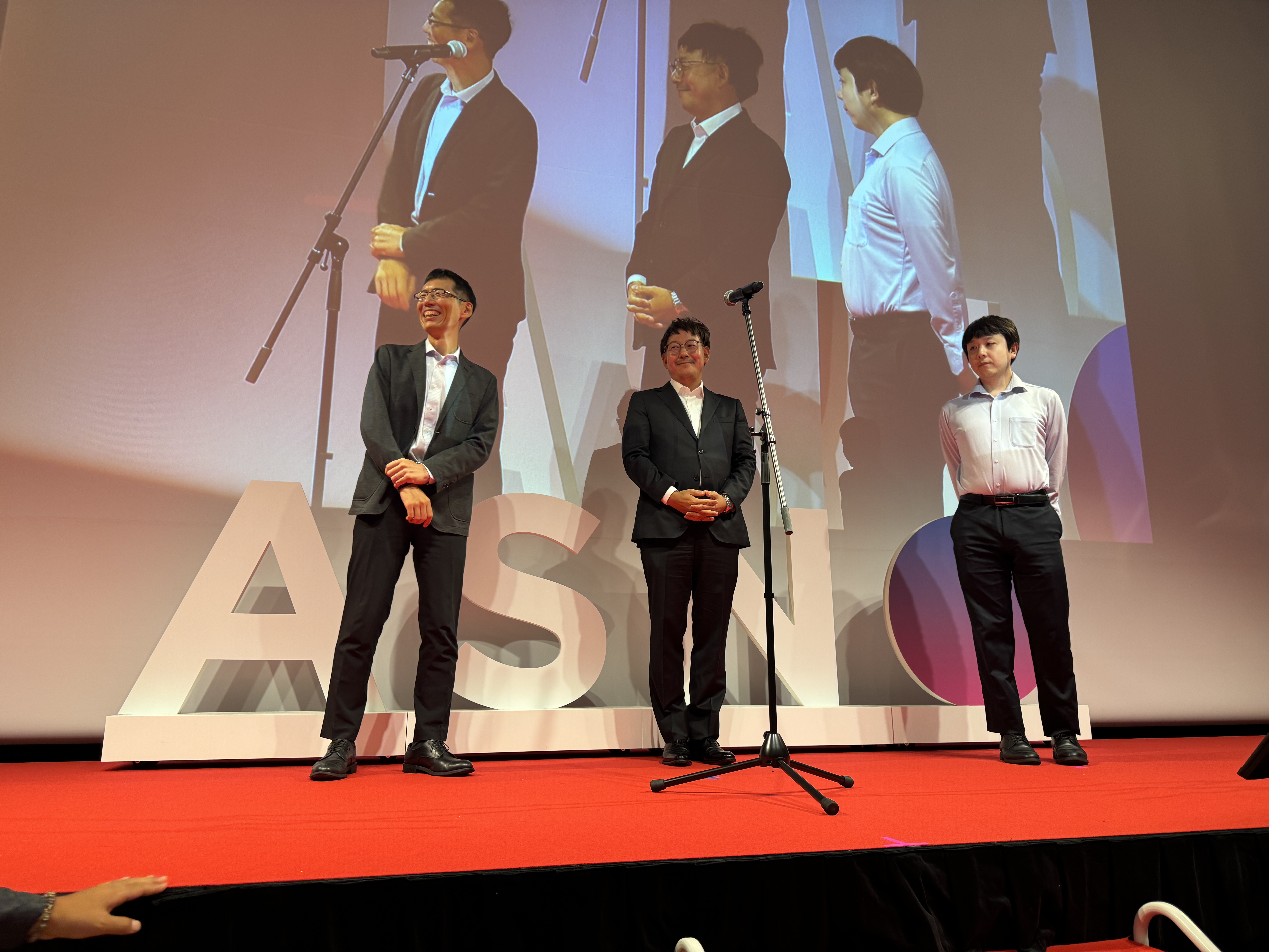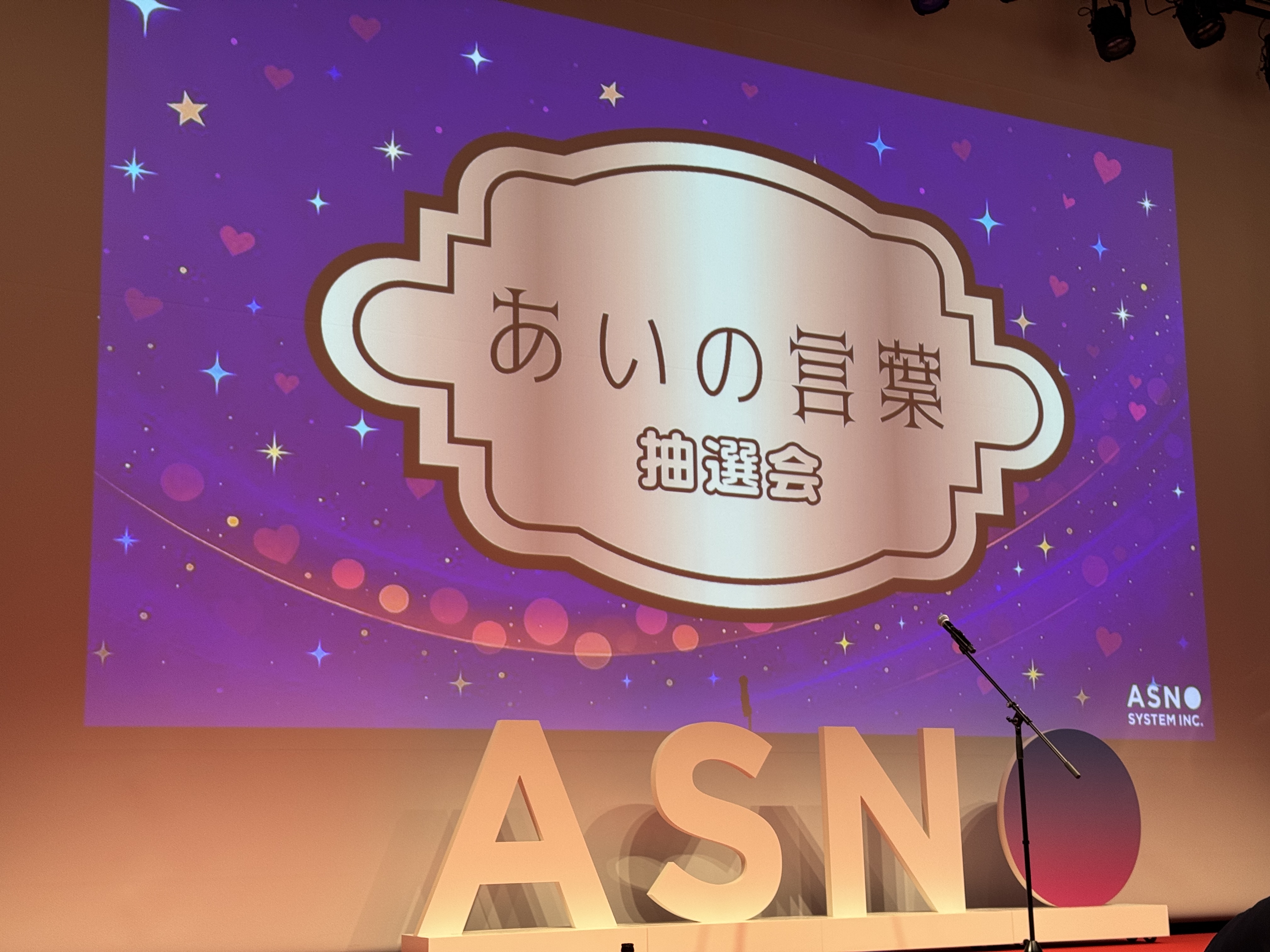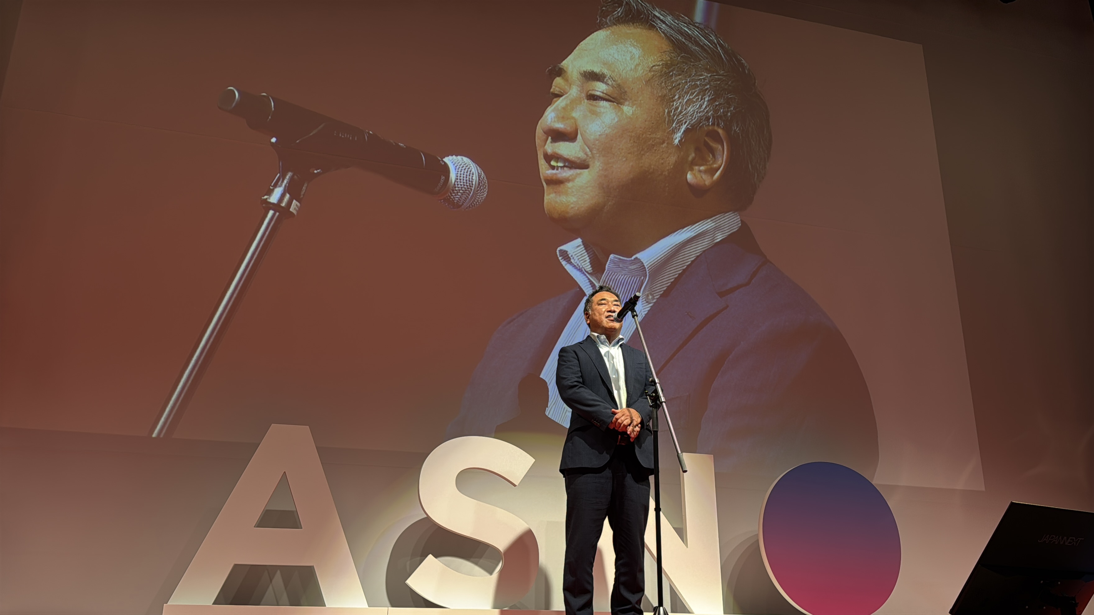 また、今回の会場ロビーには大きなスクリーンがあり、アスノシステムのこれまでの歴史を振り返るように昔の写真が流れていました。その他にもアスノシステムのロゴを大きなオブジェにしたフォトスポットが用意されているなど、例年以上に“イベント感”の強い社員総会の印象です。