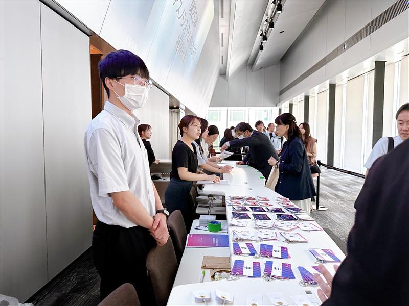 受付は、新入社員を中心に社員が行ないます!普段なかなか会うことのない拠点(東京、静岡、大阪、京都、和歌山、福岡)のメンバーとはここで「はじめまして」となることもチラホラ。
